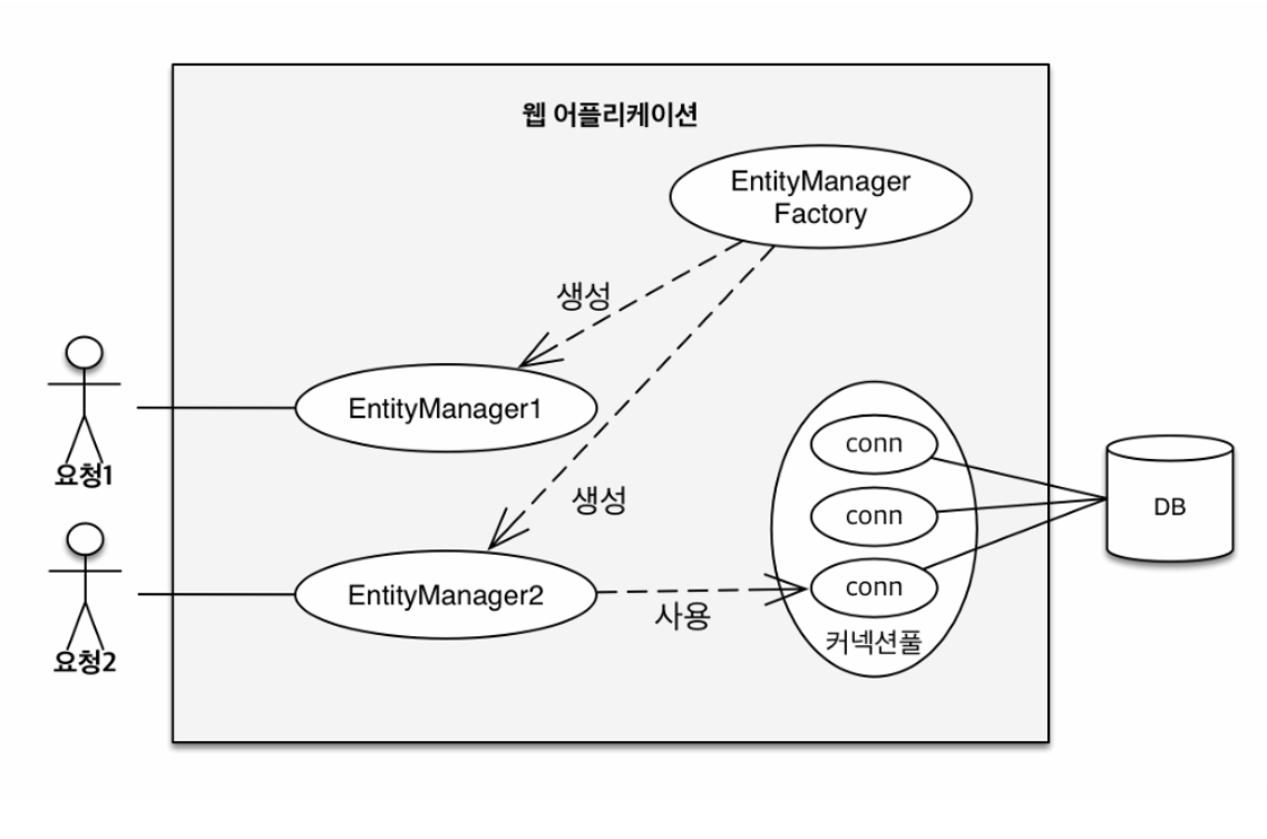 JPA๋ ์ฌ์ฉ์๊ฐ ์์ฒญ์ ํ๋ฉด EntityManagerFactory์์ EntityManager๋ฅผ ์์ฑํ์ฌ ๋น์ฆ๋์ค ๋ก์ง์ ์ฒ๋ฆฌํ๋๋ฐ ์์์ฑ ์ปจํ