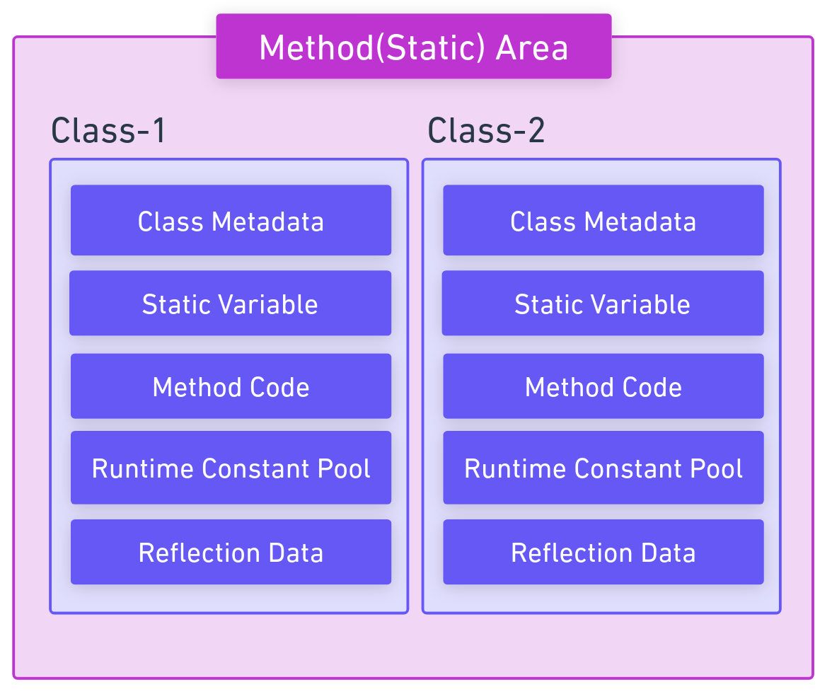 Class Metadata : ν΄λμ€μ μ΄λ¦, λΆλͺ¨ ν΄λμ€μ μ΄λ¦, μΈν°νμ΄μ€ μ 보 λ± ν΄λμ€μ ꡬ쑰μ μ 보μ μ κ·Ό μ μ΄μ, λ©€λ² λ³μ, λ©μλ λ±μ μ λ³΄κ° ν¬ν¨λ©λλ€.