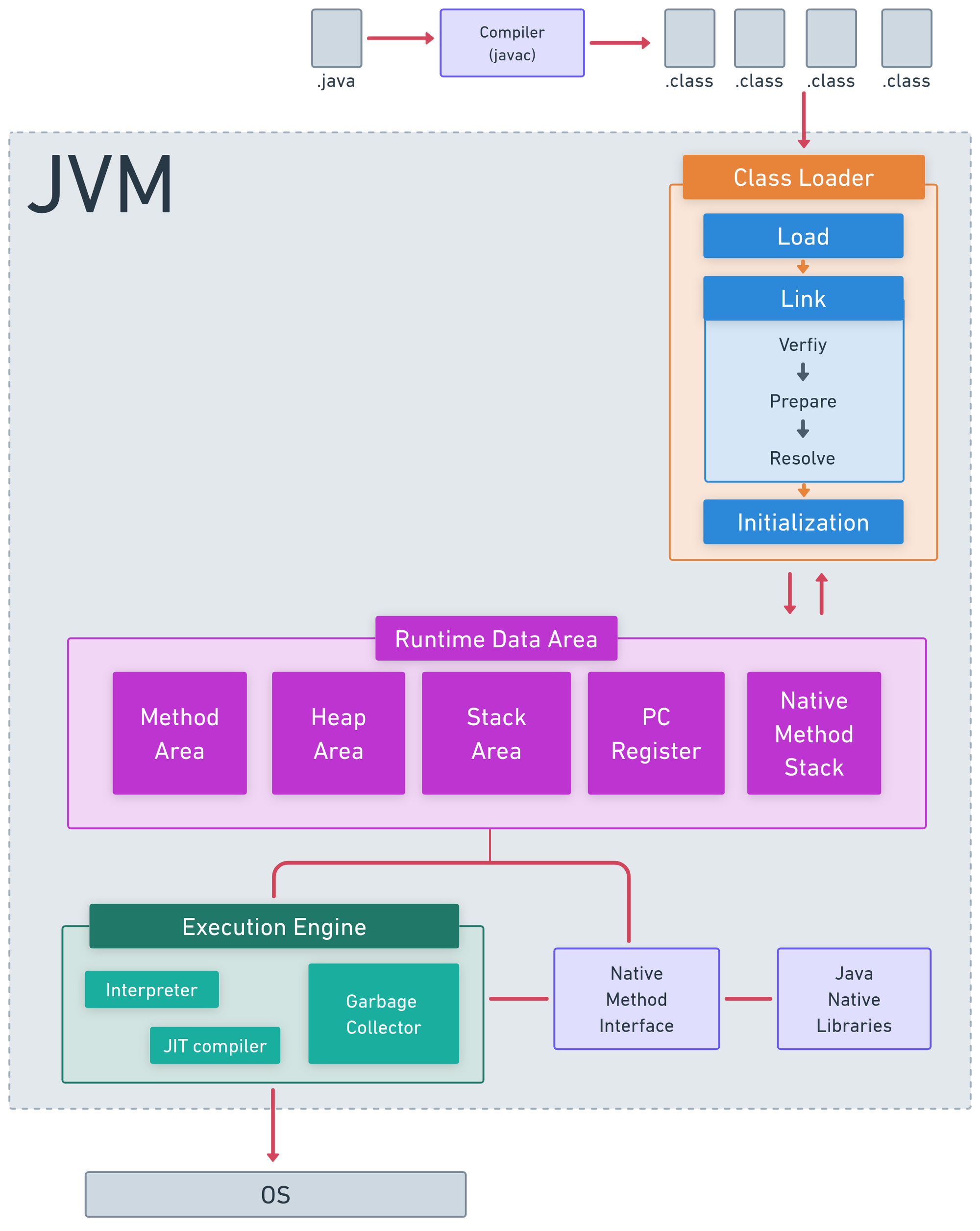 - κ²μ¦(Verfiy) : λ‘λλ ν΄λμ€ νμΌμ΄ JVMλͺ μΈμ λͺ μλ λλ‘ κ΅¬μ±λμ΄ μλμ§ κ²μ¬ν©λλ€.