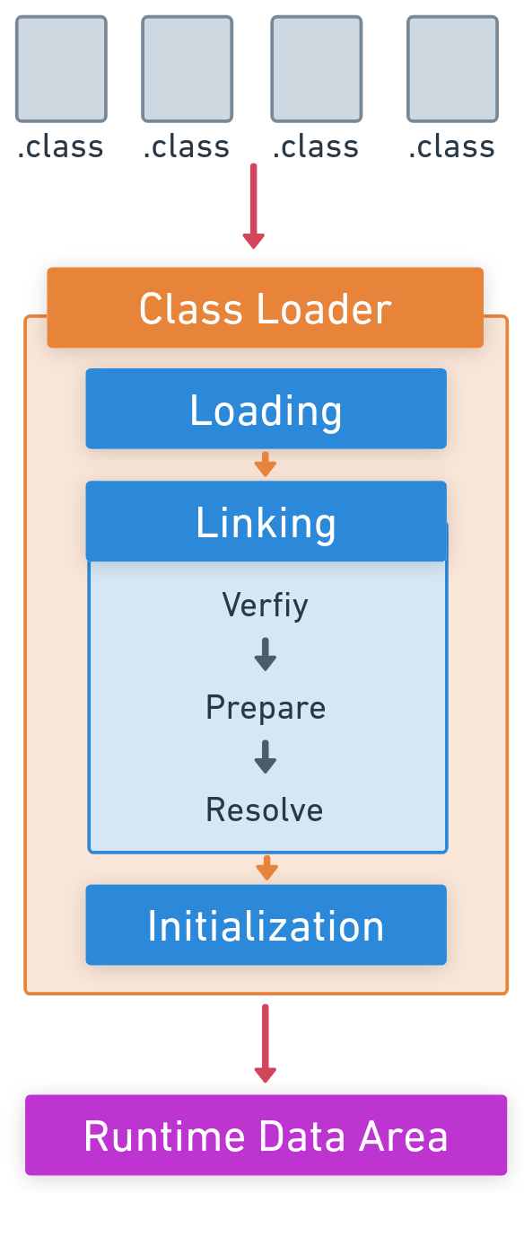 Loading -> Linking -> Initialization μμΌλ‘ μ§νλ©λλ€.